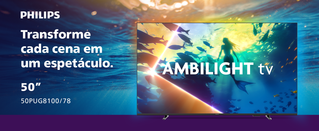 PHILIPS, Smart TV Ambilight 50″ 4K, 50PUG8100/78, Comando de Voz, HDR10+/Dolby Atmos, VRR/ALLM, Bluetooth